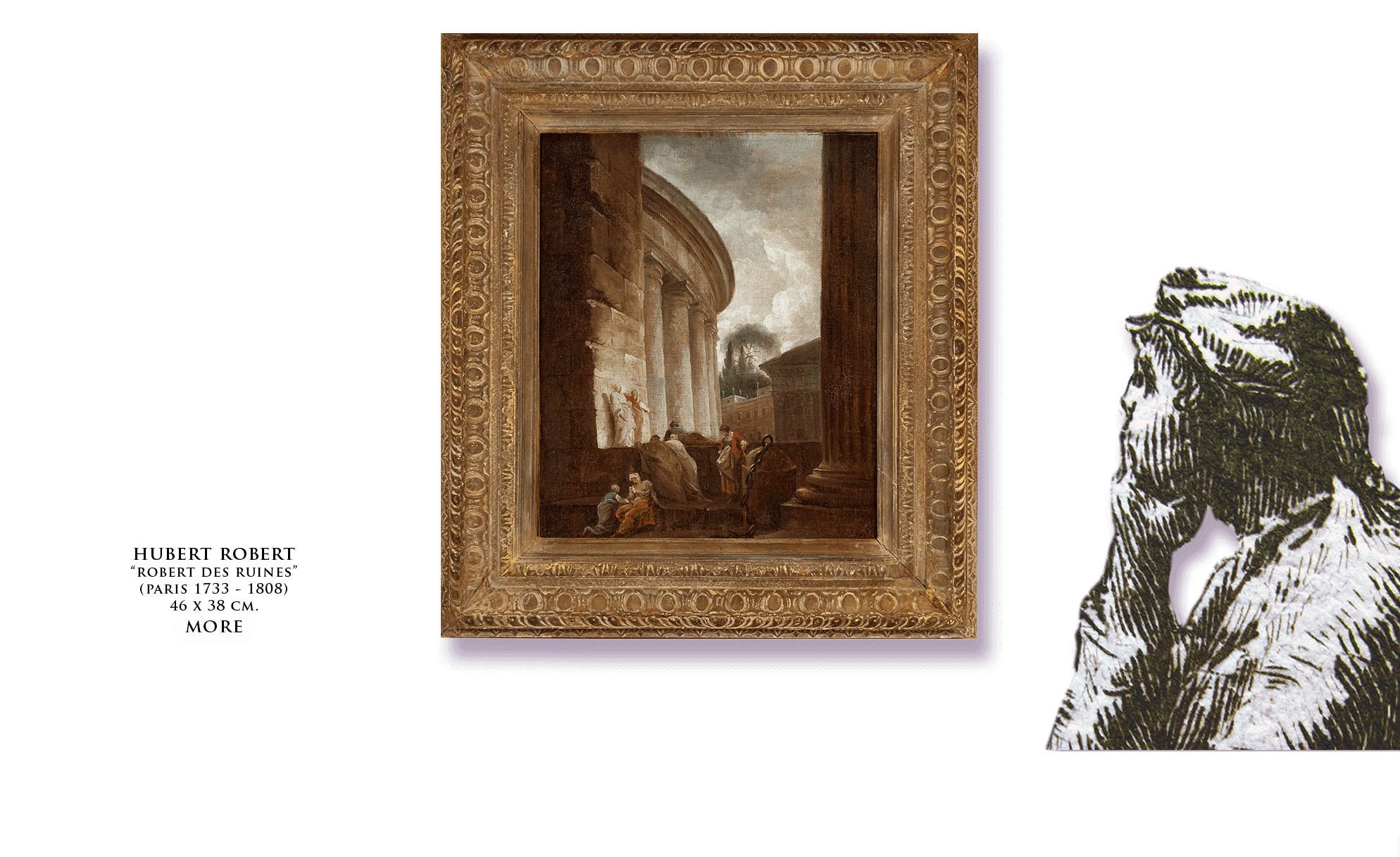 Panini’s favorite member of that staff was a Frenchman, Hubert Robert (fig. 8), who went on to a career in Paris just as successful as his mentor’s in Rome. On offer is a lovely, small, Roman-inspired view by Robert.